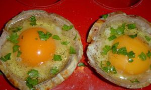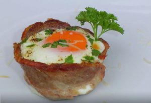 وصفة مثيرة للاهتمام للبيض المقلي لذيذ والأصلي المنازل في سلال لحم الخنزير. بسيطة وشهية للغاية في التقديم يمكن صنع الطبق لتناول الافطار.