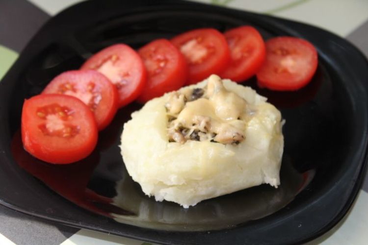- حول البطاطا المسلوقة إلى بطاطس مهروسة مع إضافة القليل من الدفء الحليب ، ورمي شريحة من الزبد والعجن مع سحق.