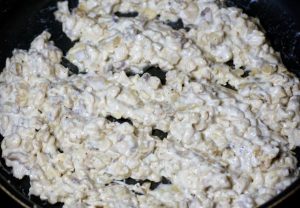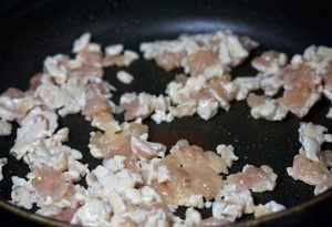 فيليه الدجاج المفروم فرما ناعما جدا ، وإرسالها إلى الزبدة و يقلى حتى يحمر قليلا.