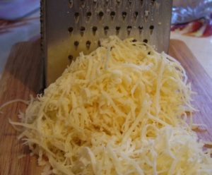 - صر الجبنة على مبشرة خشنة وتغطيتها بالكامل خزفي.