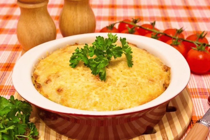 طاجن لذيذ ولذيذ تحت قشرة شهية ذهبية ، وهو سهل الطهي في المنزل في الفرن. فيليه الدجاج يمكن أن يكون الرغبة في استبدال اللحوم تركيا.