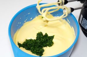إرسال السبانخ منزوع الجليد إلى كتلة الخصبة وتخلط.