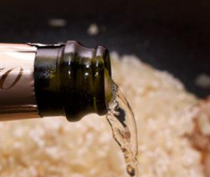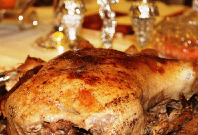 - يُسكب الشمبانيا على الدجاج ويُطهى على نار خفيفة لمدة تتراوح بين 40 و 45 دقيقة على الأقل النار.