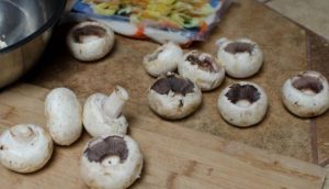 نحن نغسل الفطر ونجف ونزول الساقين. نضع الفرن على 180 درجة.