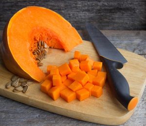 قشر اليقطين والبذور ومقطعة إلى قطع.