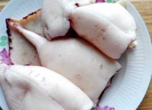 - يُغلى المزيج في الماء ، ويُضاف ورق الغار ، والبازلاء والملح. نحن خفض جثث الحبار في الماء المغلي ، عد إلى 15 وخذ الحبار من الماء. حاول ألا تهضم الحبار ، وإلا فإنها ستكون المطاط.