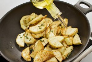 - يُسخّن زيت الزيتون على نار متوسطة ، يُضاف الباذنجان والزعتر وتصب الخل البلسم. مزيج، أضيفي المزيد من زيت الزيتون. يقلى من جميع الجهات.