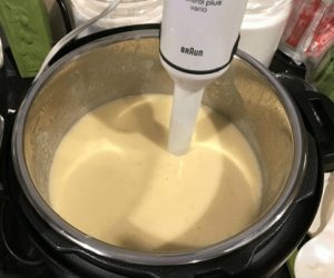 - يُطحن الحساء مع الخلاط ، يُضاف الخردل ويُمزج. سخني زيت الزيتون وأضف إكليل الجبل المفروم.