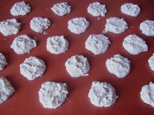 - سخن الفرن إلى 200 درجة مئوية وضع ورقة على ورقة الخبز شهادة جامعية ، وانتشر العجين في أجزاء صغيرة. علبة استخدام قوالب مختلفة على النحو المرغوب فيه.