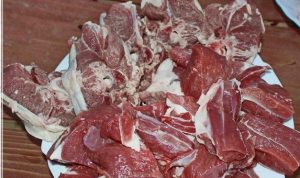 - خروف بلدي ومقطعة إلى قطع صغيرة.