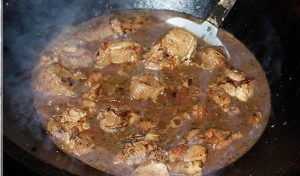- يضاف الماء إلى المرجل لتغطية اللحم ، وبأسرع وقت تغلي إرسال البطاطس.