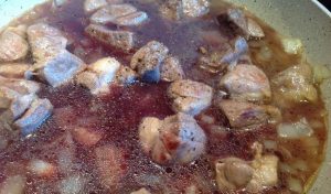 - أضف الماء الساخن حتى يكون اللحم تحته.