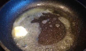 - في مقلاة أخرى ، قبل 20 دقيقة من طهي اللحم ، زبدة الحرارة.