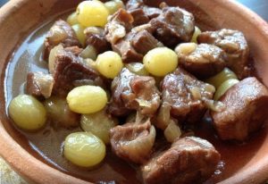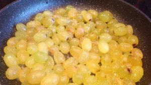 - صب العنب المغسول في زيت المغلي ، مع رش السكر و يقلى على نار عالية لمدة خمس دقائق.