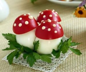 يمكنك صنع مثل هذا الطبق محلي الصنع لأطفال العطلات الجدول. agarics مشرق ولذيذ يطير من البيض مع لحم الخنزير ، سوف تجذب انتباه الأطفال. سوف يريدون بالتأكيد لمحاولة.