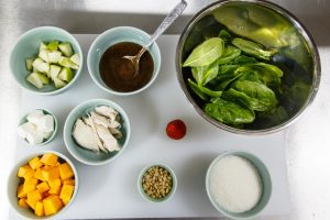- اغسل السبانخ ، جففه وضعه في وعاء ، ثم إضافة الصنوبر والجوز.