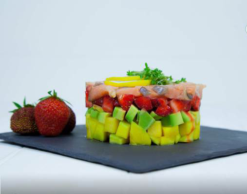 - ضعي المانجو في القالب باستخدام الطبقة الأولى ، قم بإحكام ملعقة ، الطبقة الثانية – الأفوكادو ، بعد رشها عصير الليمون للحفاظ على اللون.