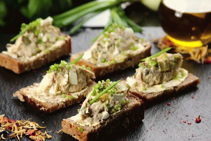 لذيذ canapes المدخن الماكريل – طبق يناسب لتناول وجبة خفيفة سريعة صغيرة أو يمكنك طهيها في المنزل على طاولة عطلة وجبة خفيفة صغيرة. وجعل هذه شطائر صغيرة لطيف بسيطة جدا!