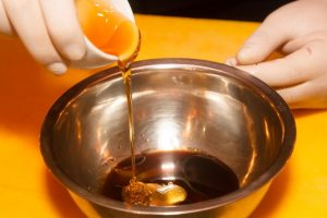 - يُمزج العسل السائل مع صلصة البلسم وعصير الليمون في وعاء زيت زيتون ، يخفق بشوكة حتى يصبح ناعم