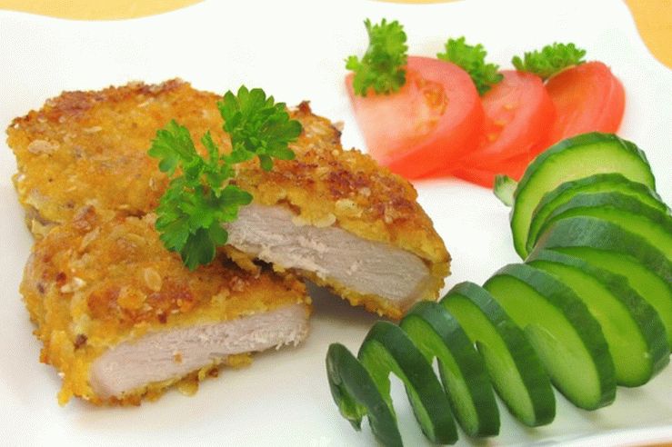 بسيطة جدا وسريعة لطهي الطعام في طبق لحم الخنزير المنزل. اتضح ، لذيذ ، هش ، في فتات الخبز المفرقعات يمكن أن تضيف الأعشاب المجففة المفضلة لديك ، مثل إكليل الجبل ، شبت ، بقدونس ، احرص على تقديم سلطة الخضروات الطازجة والطماطم المفرومة والخيار والأوراق سلطة خضراء على طبق جانبي ، يمكنك غلي البطاطس والأرز.