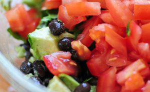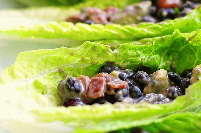سلطة محلية الصنع لذيذة مطبوخة بالفاصوليا. املأ قوارب مصنوعة من أوراق الخس الطازجة.