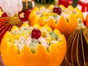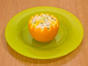 - رتب السلطة المعدة إلى نصفين معدة البرتقال.