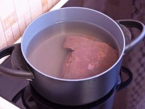 - اغسل الكبد ، خالية من الفيلم ، الأوردة ، وضعت على النار ، يُغلى المزيج ثم يُرفع الرغوة ويطهى لمدة 25 دقيقة أخرى.