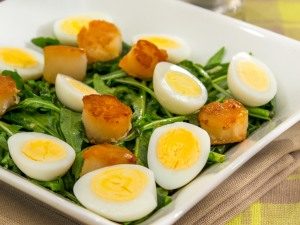 - توزيع الاسكالوب وأنصاف البيض على جرجير.