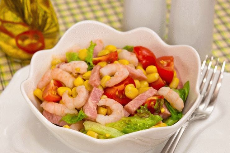 وصفة مثيرة للاهتمام لمجموعة غير عادية من المأكولات البحرية مع اللحوم المنتج ، اتضح سلطة لذيذة بشكل غير متوقع المطبوخ في المنزل لقضاء العطلة ، ويمكن استبدال لحم الخنزير مع كربيد ، ولحم الخنزير ، أي منتجات اللحوم الخالية من الدهون.