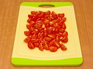 - اغسل طماطم الكرز ، مقطعة إلى شرائح.