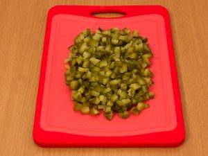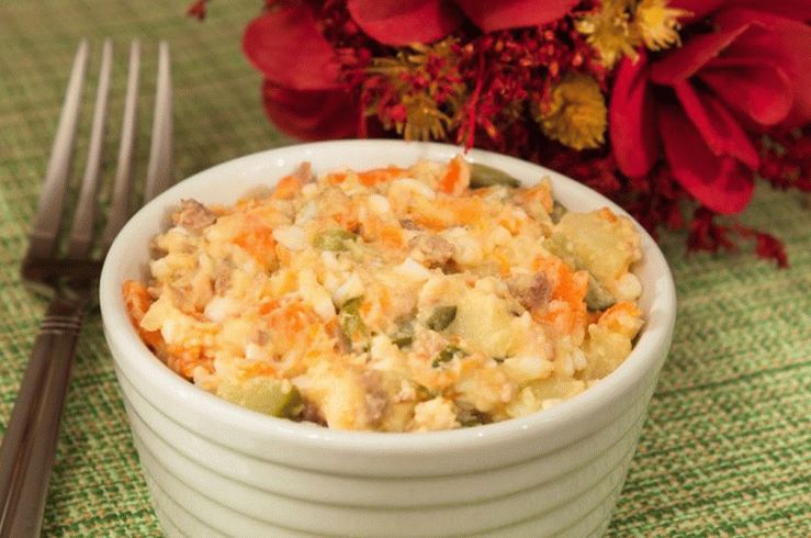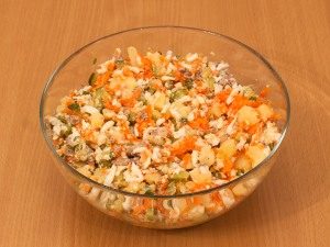 إصدار نباتي من أوليفييه ، حيث بدلاً من مكونات اللحوم الأسماك. والعنصر المطلوب هو المخللات برميل ، محاولة للعثور عليهم في السوق. سوف تتحول إلى طهي في المنزل جدا سلطة لذيذة.