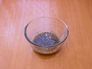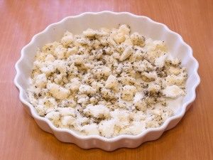 - توضع في صحن الخبز ، صب الزيت العطري خليط.
