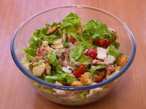 - فقط قبل التقديم (للحفاظ على الخصائص المقرمشة المفرقعات) ، إضافة المفرقعات والكرز والجبن ولحم الخنزير المقدد ، بعناية لخلط.