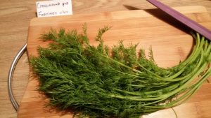 - ناعما يقطع الشبت. صب نصف الخضر في أذنك لمدة 5 دقائق للاستعداد.