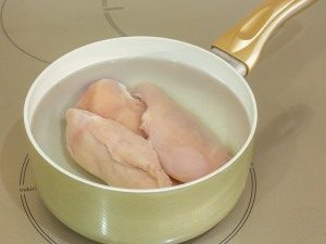 - اسلقي لحم الدواجن ، فرم ناعماً.