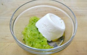 - بعد وضع الخيار المبشور في وعاء ، اضغط على الثوم و إضافة النعناع المفروم.