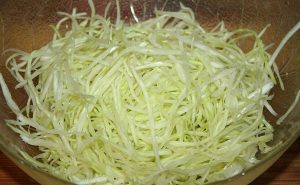 - يقطع الملفوف ، ويوضع في اللحم ، ويطهى لمدة 20 دقيقة.