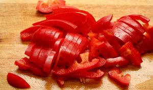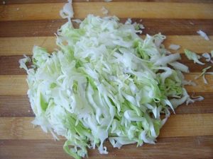 - نقطع الكرنب والفلفل الحلو مع قش رفيع.