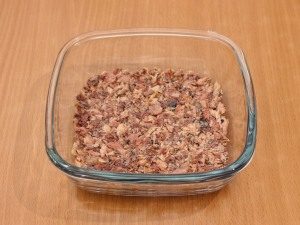 - يهرس الهريس بدون زيت في صفيحة منفصلة مع شوكة.