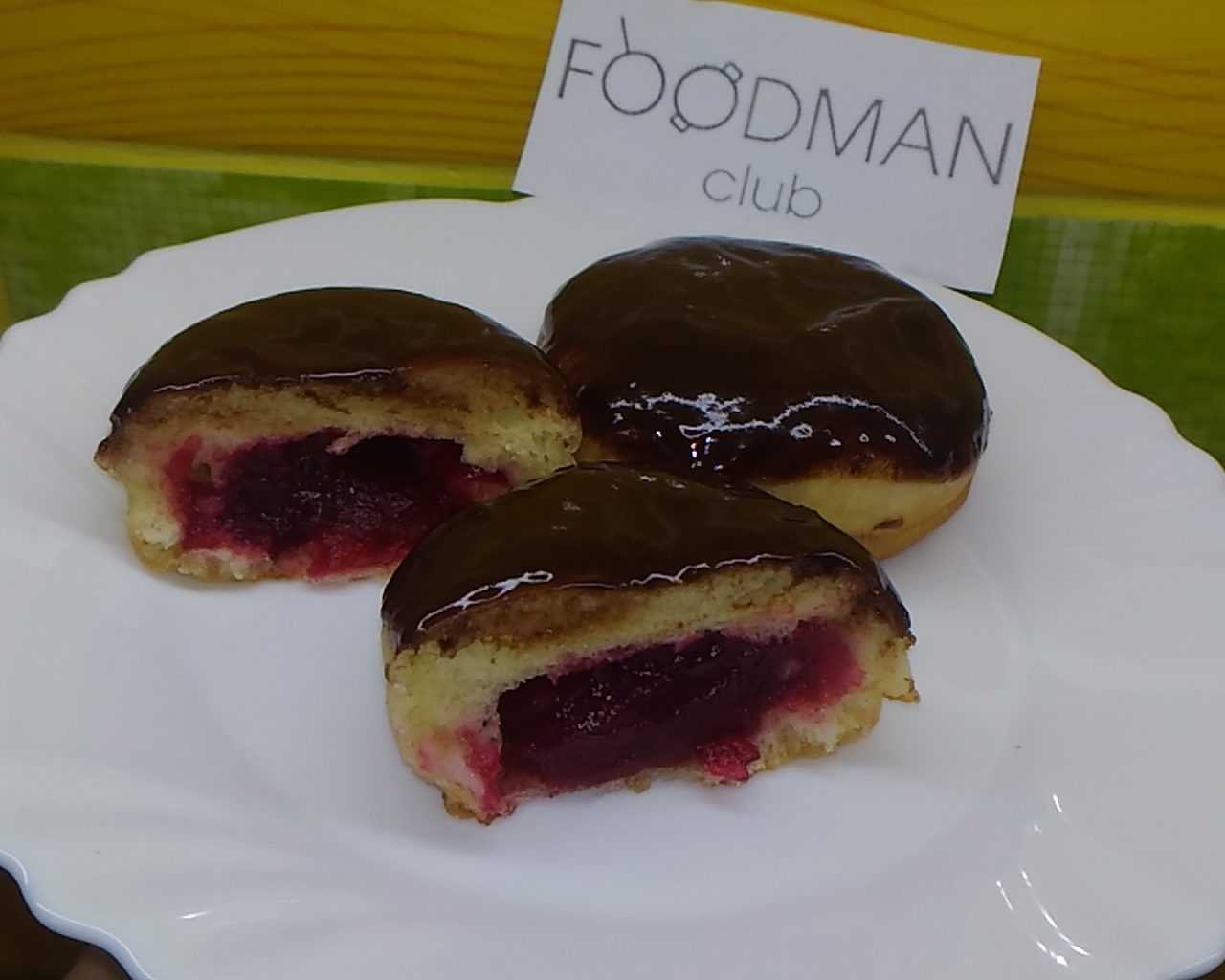 - الآن بمساعدة كيس المعجنات نملأ الكعك لدينا مربى الكرز. وتراجع في الجليد الشوكولاته وحدها حزب.