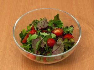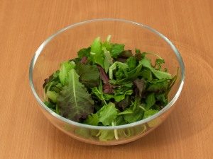 - يترك الخس يغسل سابقا وممزقة يدويا في وعاء يجفف جيدا مع المناشف الورقية.