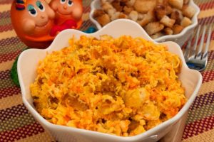 سلطة أصلية ولذيذة مع المفرقعات المقرمشة محلية الصنع مطبوخ بدون ملح ، ولكن محنك فقط مع المايونيز وصفة منزليةمايونيز “محلية الصنع” مع زيت الزيتون
