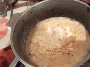 - نحن تنظيف الجزر وفرك على مبشرة غرامة. نحن نائم في مرجل ويترك على نار خفيفة 5 دقائق أخرى.