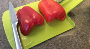 - اغسل الفلفل وتنظيفه من البذور والجدران وذيل الحصان. شريحة على القش كبير.