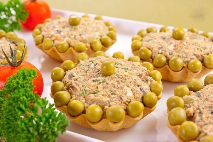 جعل tartlets مع كبد سمك القد مزينة باللون الأخضر البازلاء – طبق مفصول مع خدمة الأصلي وممتازة طعم.