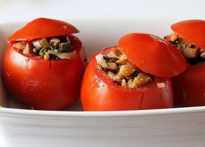 - ضع الحشوة في الطماطم ، ثم غطيها بـ “أغطية” وأرسلها تُخبز في الفرن لمدة 10 دقائق عند درجة حرارة 180 درجة.