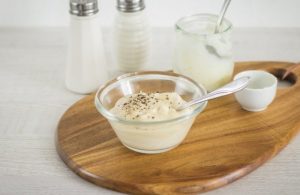 في وعاء ، اخلطي المايونيز والفجل والفلفل المطحون والملح (1 قرصة).