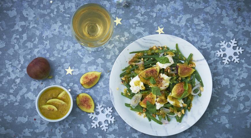 سلطة لذيذة من الموزاريلا والتين والفاصوليا يمكنك بسهولة طبخ في المنزل وفقا لوصفتي. سلطة أنيقة مع غير عادية أنصحك بعمل مزيج من المكونات لعشاء رومانسي.