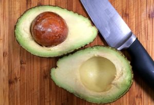 قطع الأفوكادو إلى النصف ، وإزالة الحجر ، واخراج اللب و إرسالها إلى وعاء الخلاط.