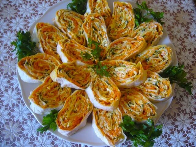 جعل لفات بيتا أعدت مع محشوة بالجبن أديغي والجزر الكورية – إنه حار طعم ومزيج مثالي من المكونات.